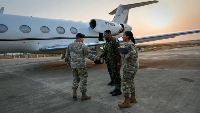 Il tenente generale dell’esercito americano John W. Brennan, vice comandante del comando africano degli Stati Uniti, ha incontrato i funzionari nigeriani all’arrivo in Nigeria per colloqui. (Sgt. 1a classe dell’esercito americano Kenneth Tucceri)