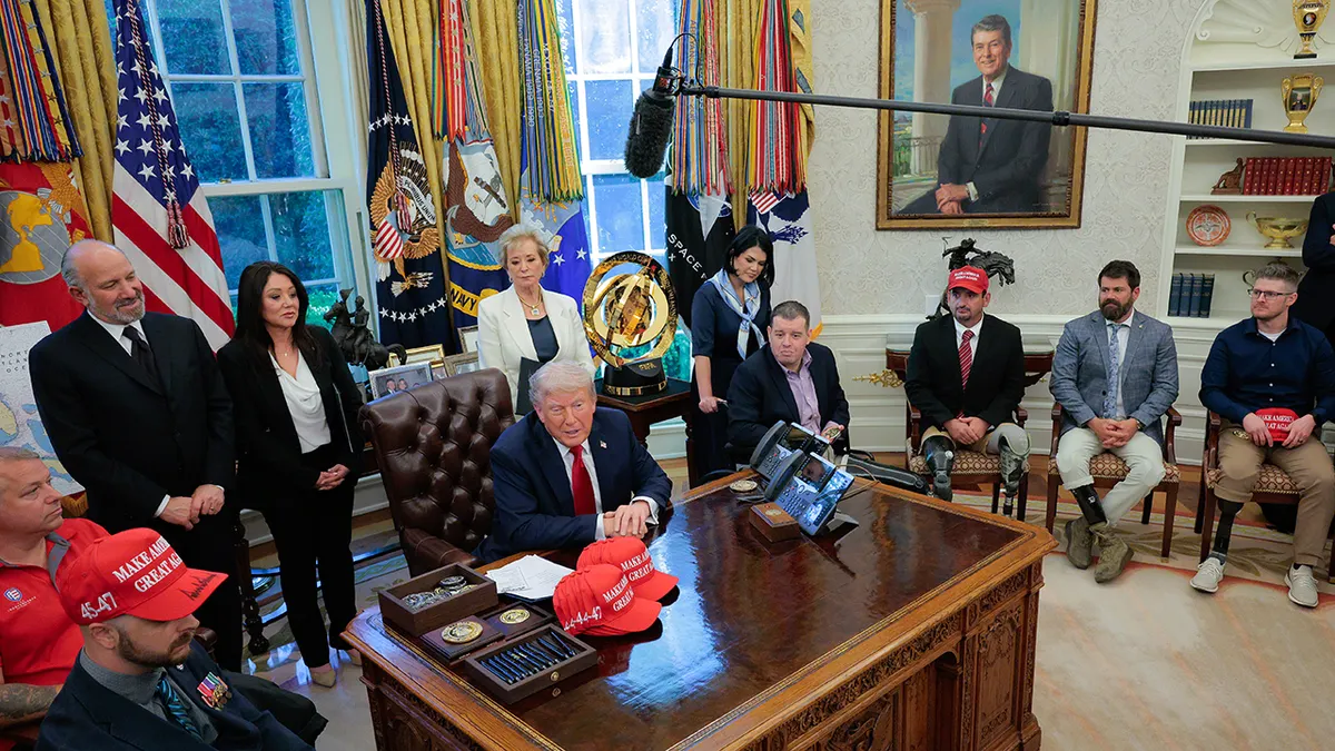 Il presidente degli Stati Uniti Donald Trump parla ai media dopo aver firmato un ordine esecutivo alla Casa Bianca. (Chip Somodevilla/Getty Photos)