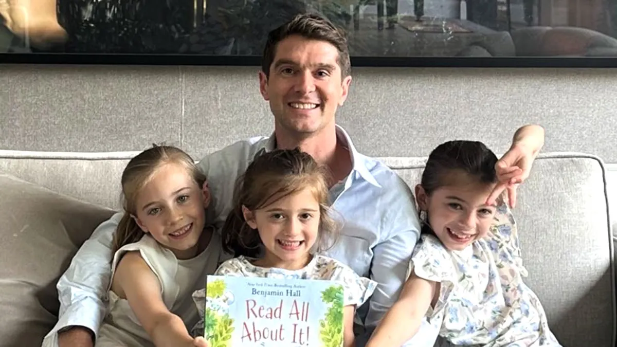 Il corrispondente senior di Fox Information Benjamin Corridor con tre delle sue figlie con in mano il suo nuovo libro per bambini, “Leggi tutto!” (Per gentile concessione dell’autore)