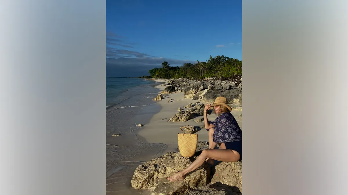 Christie Brinkley cammina lungo la costa durante una vacanza tropicale. (Christie Brinkley/Instagram)