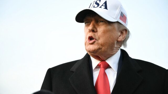 Il presidente degli Stati Uniti Donald Trump parla alla stampa al suo ritorno alla base congiunta Andrews nel Maryland il 13 gennaio 2026.