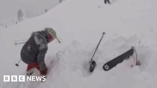 Una videocamera GoPro cattura il momento in cui due sciatori ne salvano un altro sepolto sotto un metro di neve a Lake Tahoe, in California.
