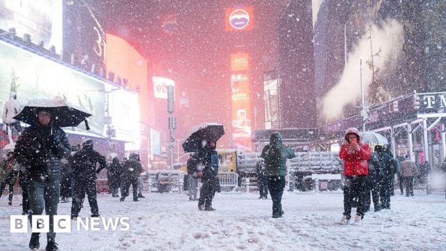 Il filmato mostra la neve che copre parti degli Stati Uniti mentre un’intensa tempesta invernale colpisce diversi stati americani, tra cui il Connecticut e il New Jersey.