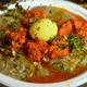 Haleem di montone condito con pollo 65, cipolle fritte e noci | Credito fotografico: PERIASAMY M