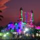 Posti a sedere sul pavimento in stile arabo con moquette e cuscini e momento dell’iftar in Road Arabiya a Ganapathy | Credito fotografico: PERIASAMY M