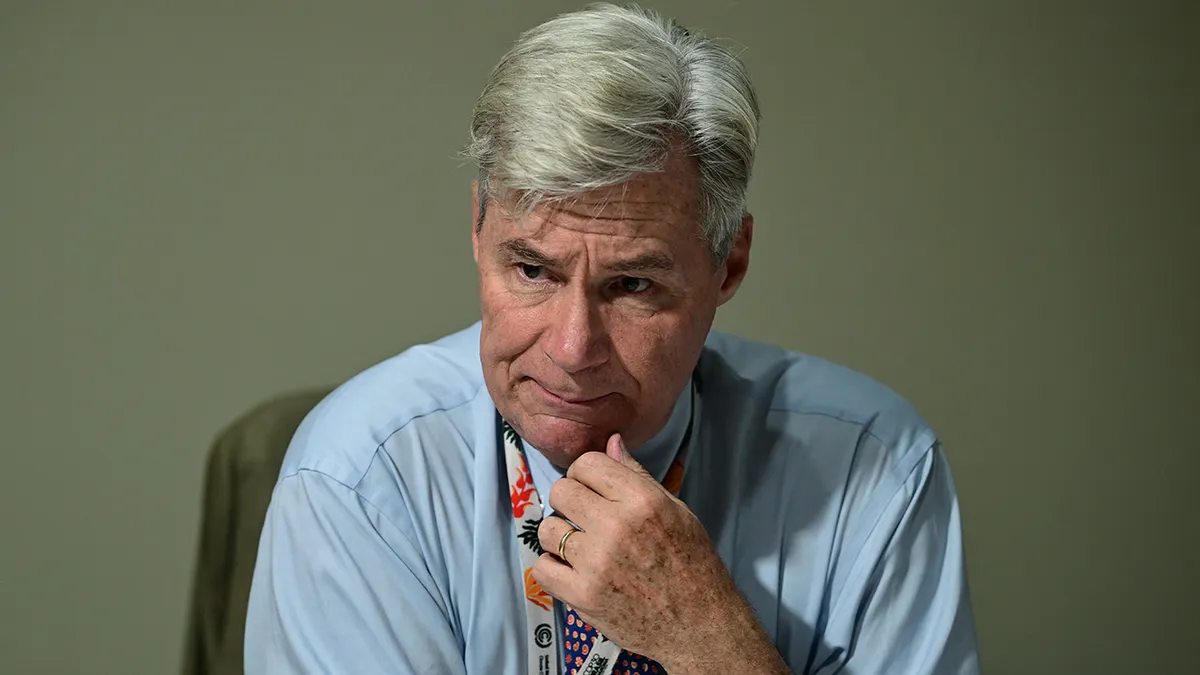 Il senatore Sheldon Whitehouse, D-RI., parla con i giornalisti il 14 novembre 2025. (Pablo Porciuncula/AFP tramite Getty Photos)