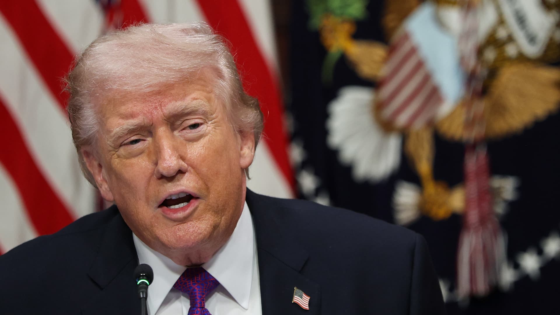 Il presidente degli Stati Uniti Donald Trump parla durante una tavola rotonda sull'”impegno di protezione dei contribuenti” dell’amministrazione nella Indian Treaty Room della Casa Bianca il 4 marzo 2026 a Washington, DC.