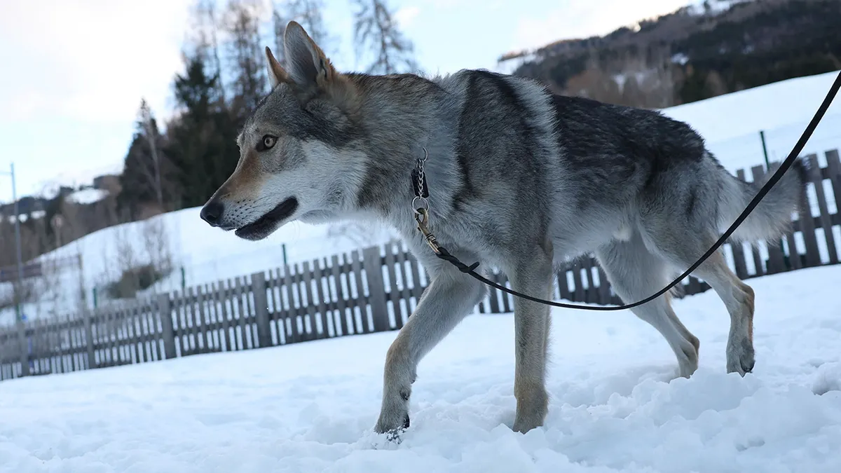 Nazgul, il cane che ha fatto irruzione nella dash a squadre di combinata nordica, corsa campestre alle Olimpiadi di Milano Cortina 2026, nella sua casa di Tesero, in Italia, il 20 febbraio 2026. (REUTERS/Kai Pfaffenbach)