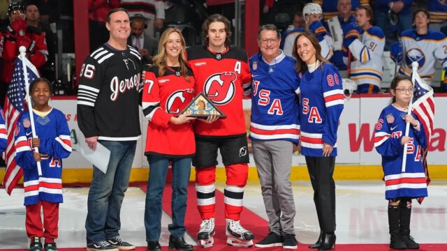 Prima del lancio del disco contro i Buffalo Sabres, i Devils hanno onorato tutti i loro olimpionici dal 2026, compresi quelli che rappresentavano nazioni straniere. Nessuno ha ricevuto un’accoglienza più calorosa dal pubblico di Hughes, mentre i fan cantavano “USA!”