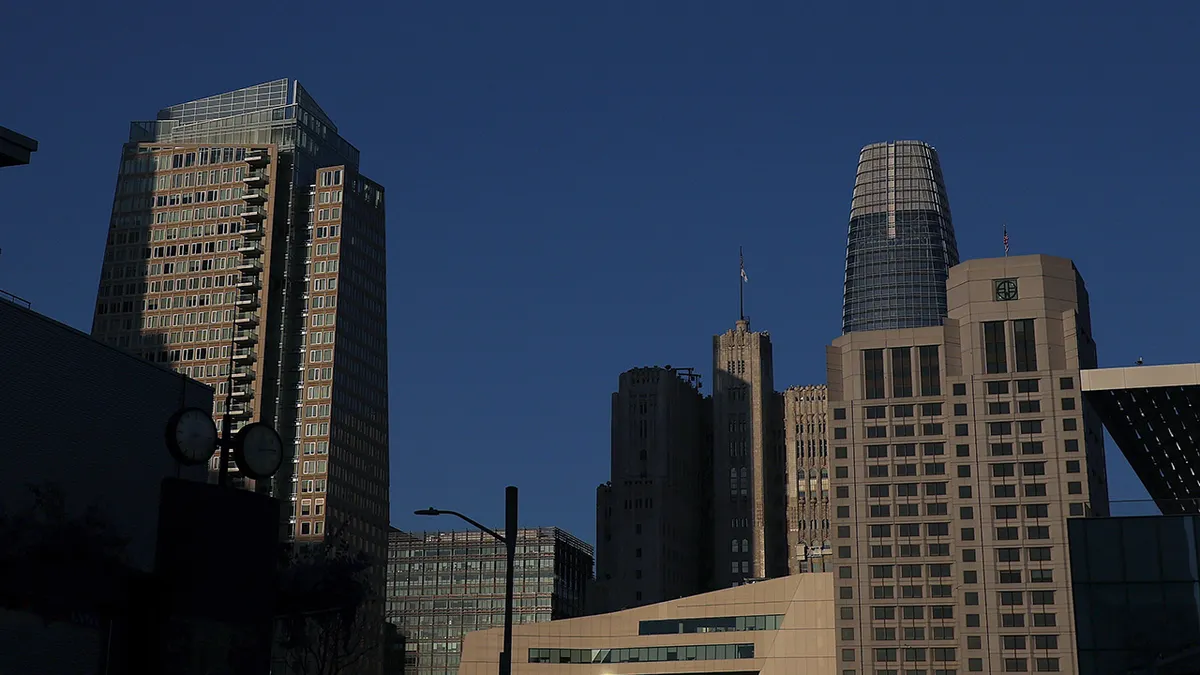 Lo skyline prima del Tremendous Bowl al Moscone Middle, 4 febbraio 2026, a San Francisco. (Ishika Samant/Getty Photographs)
