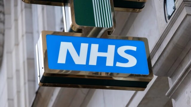 Segno per il Servizio sanitario nazionale NHS fuori da una farmacia a Londra, Regno Unito. (Mike Kemp/In immagini tramite Getty Photographs)