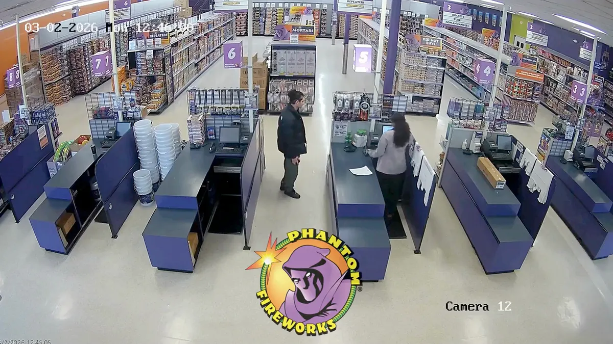 Le riprese delle telecamere di sorveglianza mostrano Emir Balat che acquista una miccia per fuochi d’artificio in Pennsylvania il 2 marzo. (Filmato per gentile concessione di Phantom Fireworks)