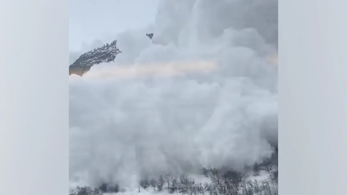 Il momento spaventoso in cui una valanga si è abbattuta lungo il fianco di una montagna e si è schiantata contro un treno che attraversava le Alpi svizzere è stato catturato da un turista.