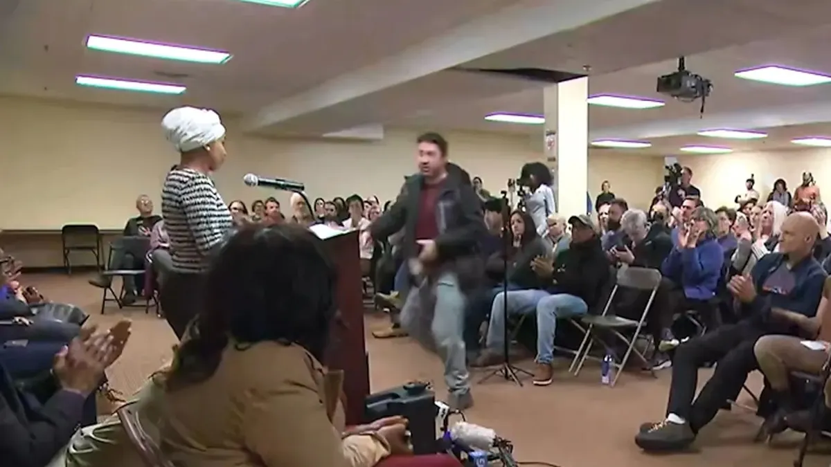 Il deputato Ilhan Omar è stato aggredito mentre parlava durante un municipio a Minneapolis. (Notizie Fox)