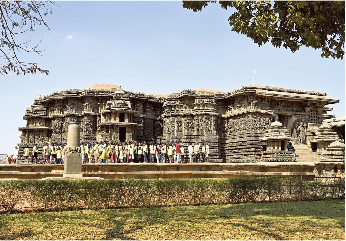 Eredità vivente: i visitatori si riuniscono al tempio Hoysaleswara, dove intricati intagli del XII secolo continuano advert attirare folle secoli dopo la loro creazione.