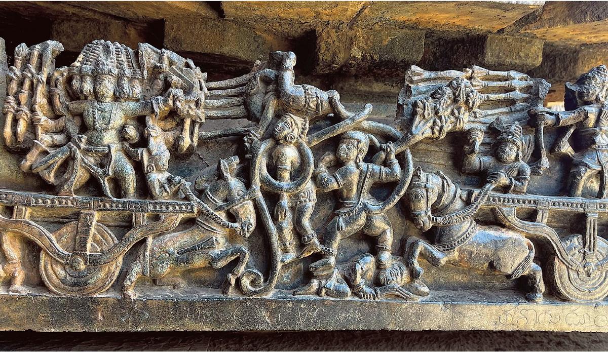 Epica nella pietra: una furiosa battaglia tra Rama e Ravana è raffigurata sulle pareti del tempio Hoysaleswara, un tempio di Shiva del XII secolo.