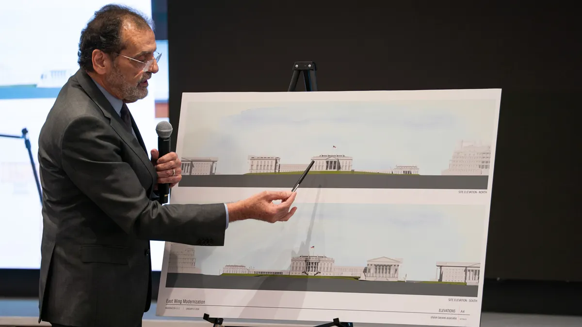 L’architetto del progetto, Shalom Baranes, scelto da Trump a dicembre per guidare la fase successiva del progetto della sala da ballo, ha fornito alla commissione una presentazione dettagliata, compresi i rendering della sala da ballo e le viste del complesso della Casa Bianca con l’aggiunta.