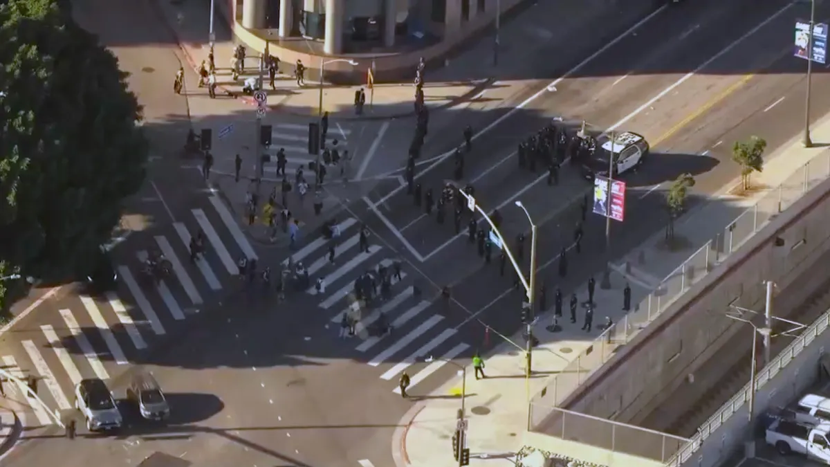 La Divisione Centrale del Dipartimento di Polizia di Los Angeles (LAPD) ha emesso un avviso alla comunità intorno alle 15:30 ora locale, rilevando che gli agenti stavano trattenendo una persona per aver lanciato oggetti quando la folla li ha circondati e “ha iniziato a ostacolarli”.