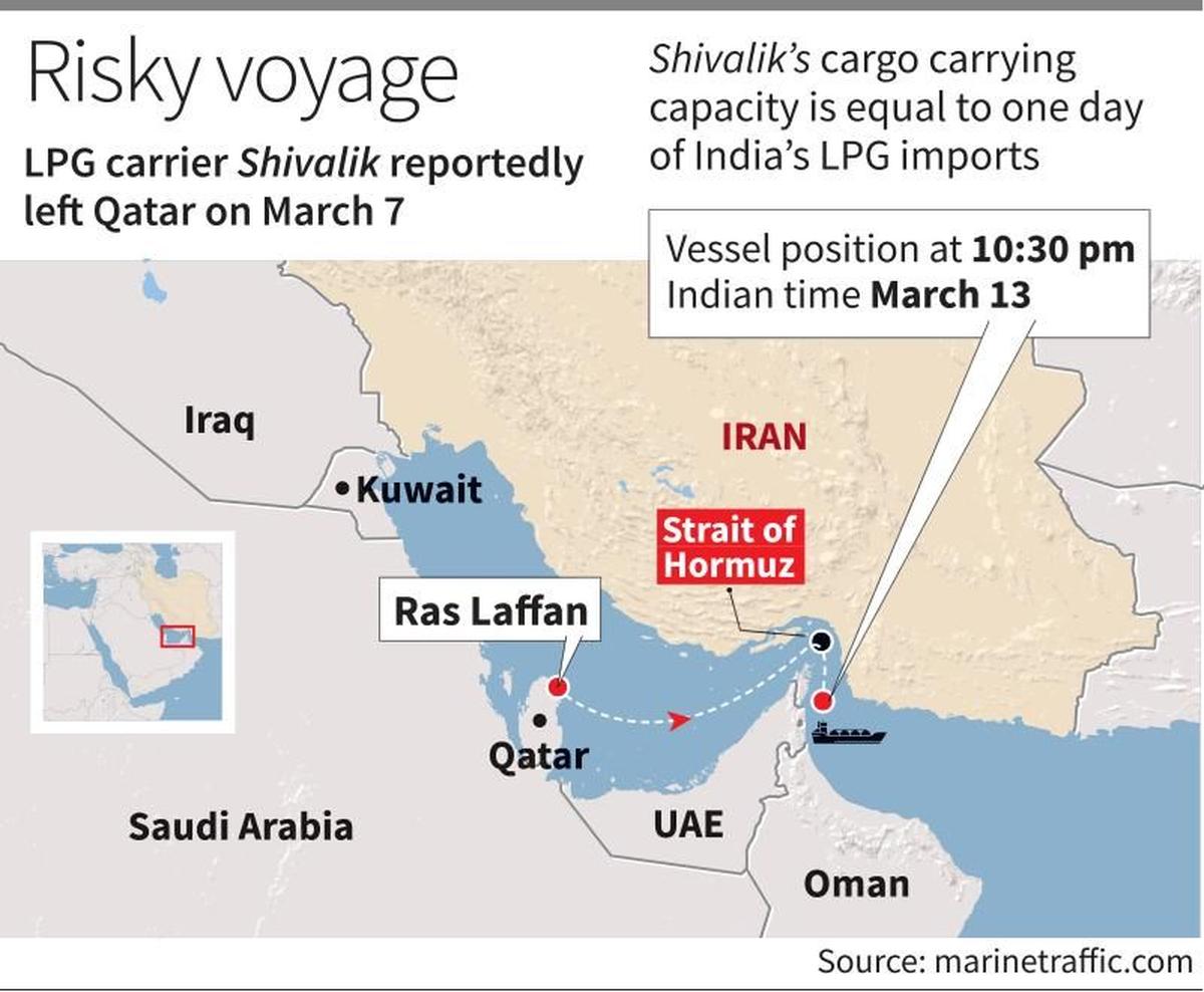 Shivalikuna nave porta GPL battente bandiera indiana con una capacità di carico di oltre 54.000 tonnellate, ha attraversato lo Stretto di Hormuz venerdì notte (13 marzo 2026), secondo marinetraffic.com, un portale on-line che tiene traccia dei movimenti delle navi mercantili.