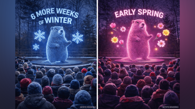 Groundhog Punxsutawney Phil esce il giorno della marmotta il 2 febbraio 2025. (PCNTV)