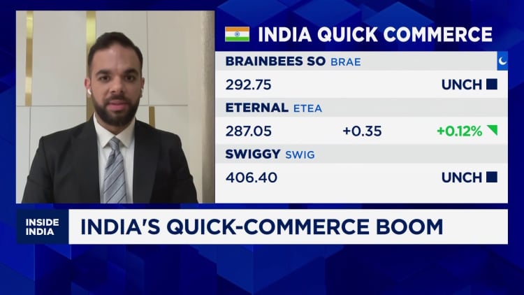 “Il mercato indiano del commercio rapido rappresenta attualmente il 10% del suo mercato e-commerce, ma nel medio e lungo termine potrebbe rappresentare il 40%-50%”, ha dichiarato la scorsa settimana Karan Taurani, vicepresidente esecutivo della società di brokeraggio indiana Elara Capital, a Inside India della CNBC.
