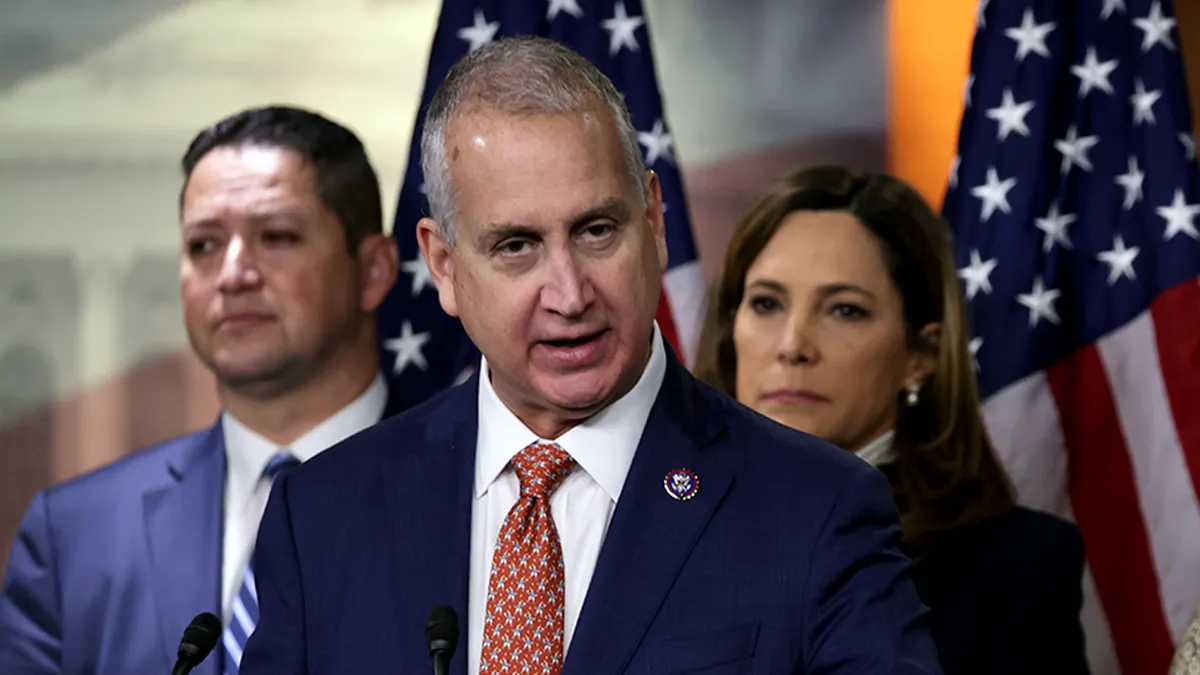 Il deputato Mario Diaz-Balart, al centro, parla accanto ai membri del Congressional Hispanic Caucus. (Alex Wong/Getty Pictures)