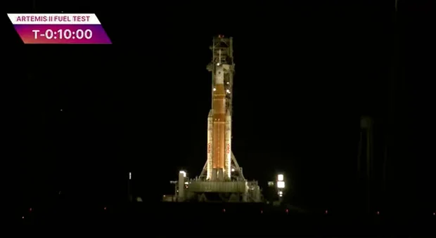 Il take a look at è iniziato circa 45 minuti più tardi del previsto, ma inizialmente sembrava procedere senza intoppi poiché ossigeno liquido superfreddo e idrogeno venivano pompati nei serbatoi del primo stadio del razzo Area Launch System. Poco dopo, l’idrogeno cominciò a fluire nello stadio superiore del razzo, come previsto.