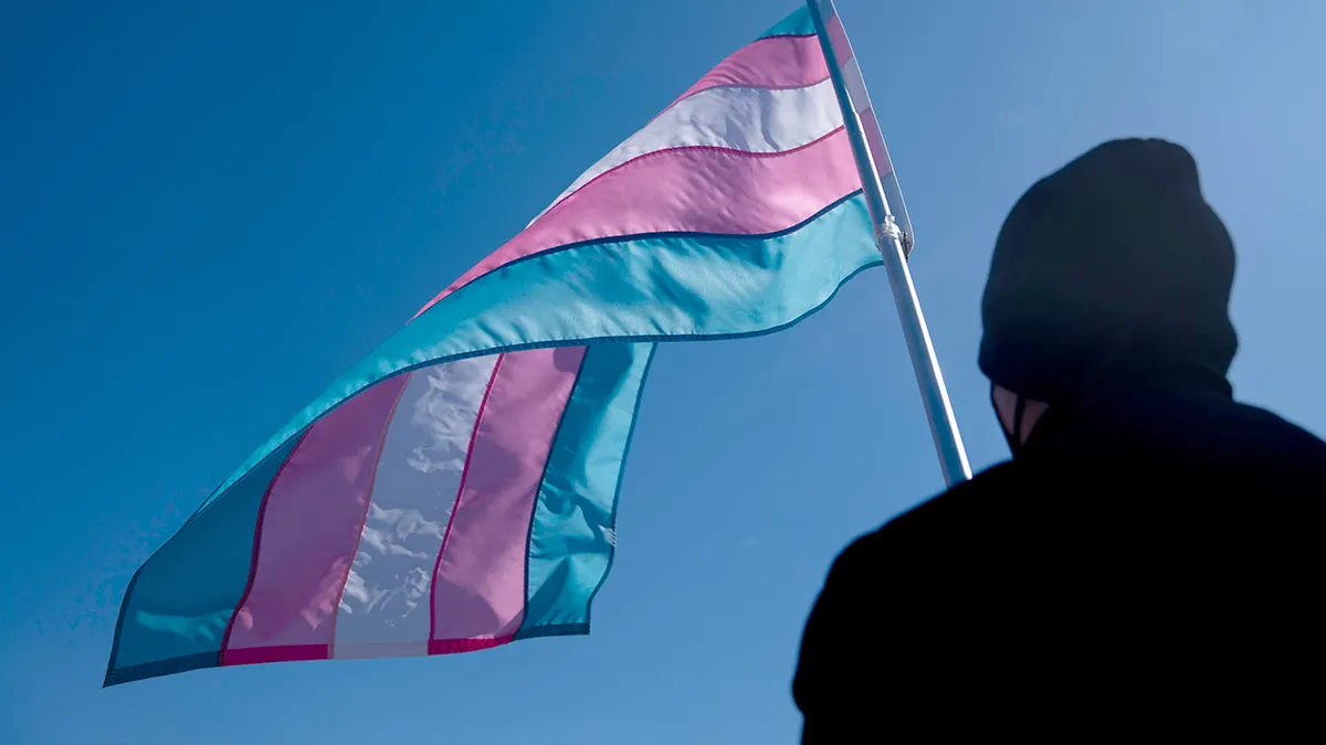 Un manifestante sventola una bandiera dell’orgoglio transgender durante una protesta vicino al Campidoglio degli Stati Uniti a Washington, DC, il 17 febbraio 2025. (Stefani Reynolds/Bloomberg tramite Getty Photographs)