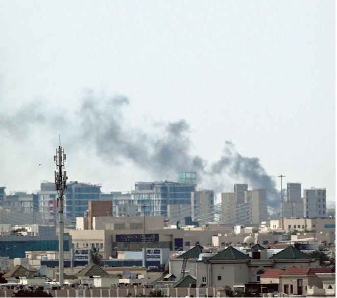 Cieli di guerra: il fumo si alza sugli edifici a Doha, in Qatar, il 5 marzo dopo che si sono udite esplosioni poche ore dopo che le autorità avevano iniziato a evacuare i residenti che vivevano vicino all’ambasciata degli Stati Uniti.