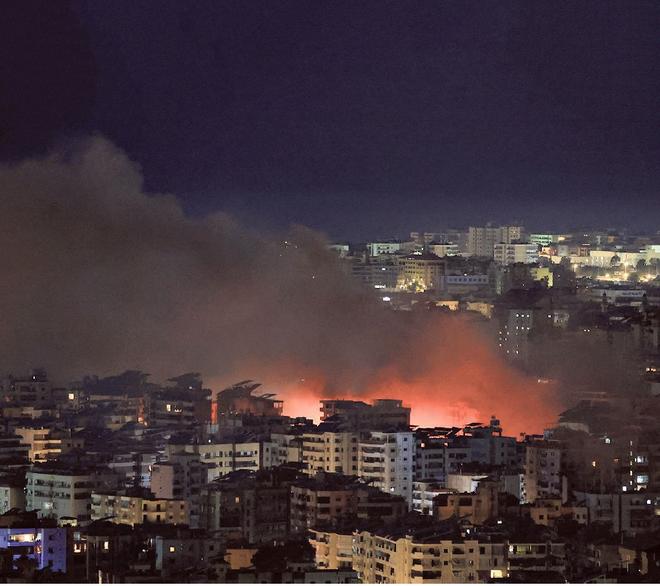 Città in fumo: Il fumo si alza sulla periferia meridionale di Beirut dopo la segnalazione di attacchi israeliani, visto da Baabda, in Libano, il 6 marzo.