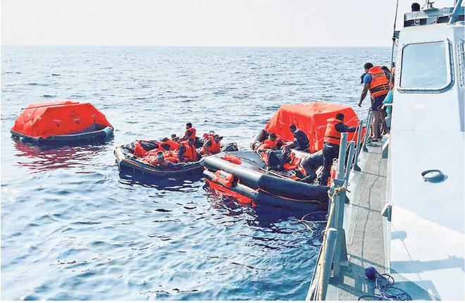 Soccorso in mare: marinai salvati dopo l’affondamento della nave iraniana IRIS Dena a Galle, nello Sri Lanka, a seguito di un attacco sottomarino americano.