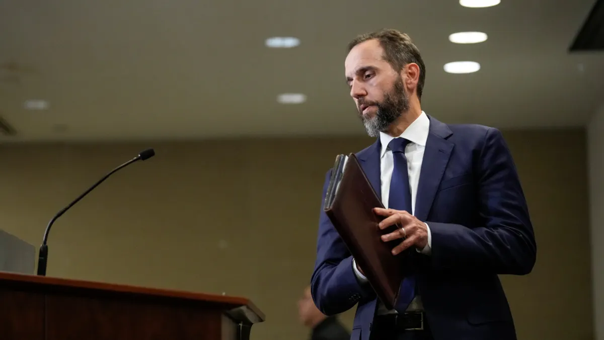 L’ex procuratore speciale del Dipartimento di Giustizia Jack Smith entra in una stanza del Rayburn Home Workplace Constructing per fare la sua deposizione davanti alla commissione giudiziaria della Digicam, nell’ambito della sua supervisione sulle indagini del Dipartimento di Giustizia sul presidente Donald Trump, a Capitol Hill a Washington, mercoledì 17 dicembre 2025. (J. Scott Applewhite/Foto AP)