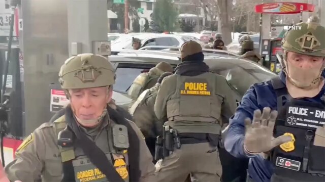 I video, pubblicati su X domenica pomeriggio, hanno attirato rapidamente migliaia di visualizzazioni e sembrano mostrare il capo della polizia di frontiera Gregory Bovino che ordina a una folla di indietreggiare mentre gli agenti federali tentano di rimuovere un uomo da un veicolo parcheggiato presso la stazione di servizio.