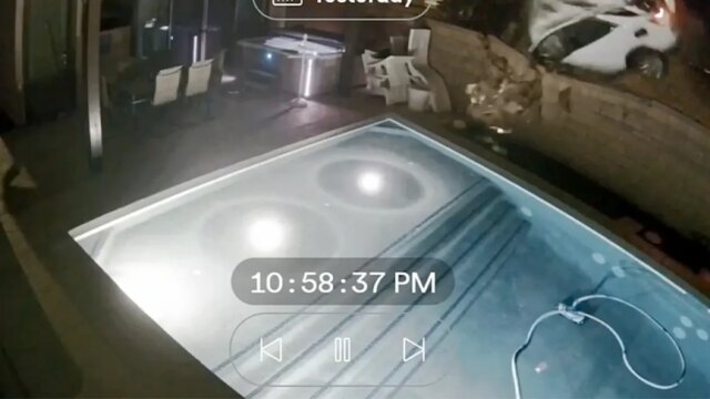 Un video selvaggio mostra un’auto in corsa che prende il volo e scaraventa il conducente nella piscina del cortile