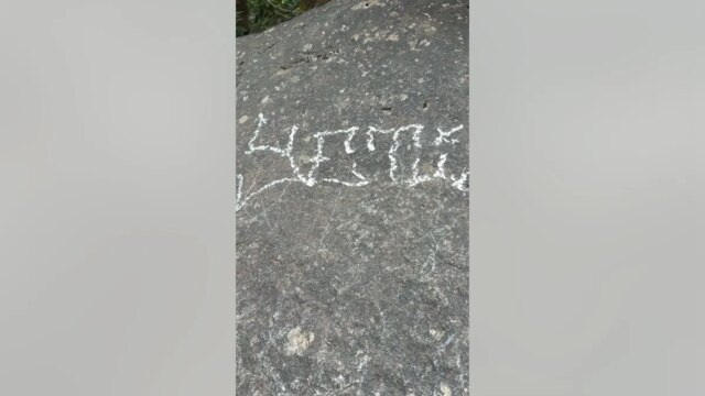 Le foto di Arakelyan mostravano un masso, una porta e un cartello informativo scarabocchiato con la parola “Yeti” con vernice spray.