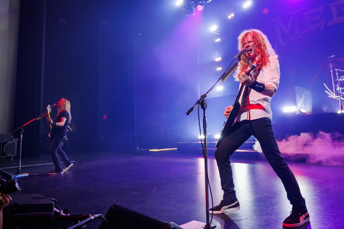 Dave Mustaine dei Megadeth si esibisce allo YouTube Theatre di Inglewood.