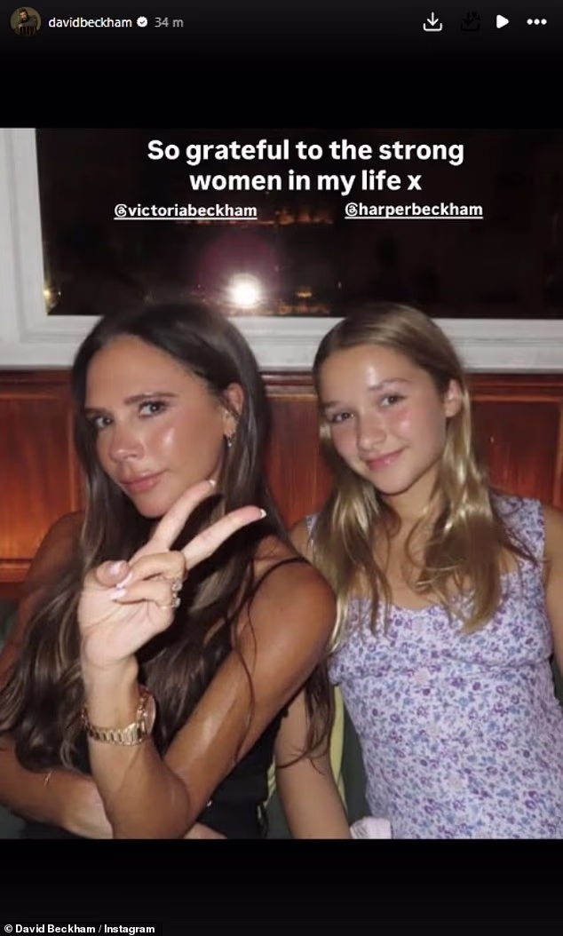 Uno scatto condiviso da David mostrava sua moglie Victoria, 51 anni, e la figlia Harper in posa insieme per una foto che lui diceva: “Così grato alle donne forti della mia vita x.”