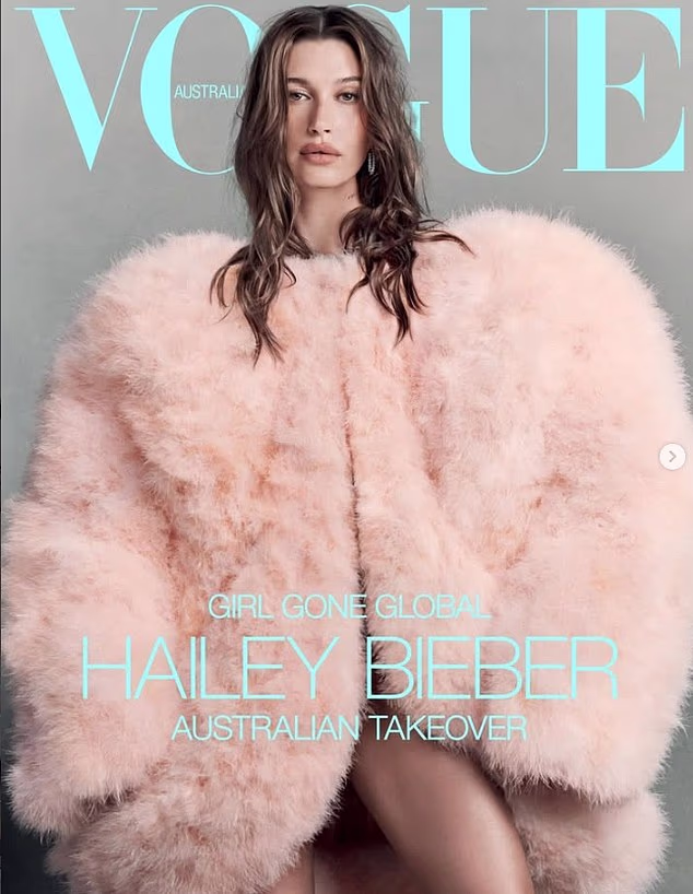 Hailey Bieber lo è La copertina di marzo di Vogue Australia star, in concomitanza con il lancio dei suoi prodotti Rhode nel paese.