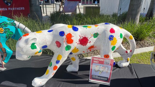 I Panthers, poche ore prima della partita all’aperto del Winter Traditional allo stadio di baseball dei Miami Marlins contro i New York Rangers, hanno svelato un paio di dozzine di sculture di pantere, tutte dipinte in un modo unico e ora messo all’asta con la speranza di raccogliere 1 milione di dollari per la ricerca sul cancro.