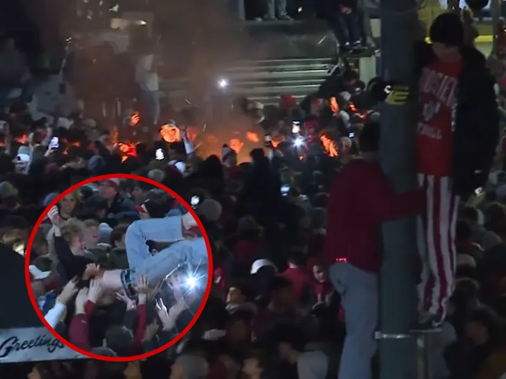 I fan degli Hoosiers sono stati visti scalare edifici e festeggiare sui tetti (sì, sul serio)… prima che la polizia tentasse di riportare tutti al livello della strada, dove hanno avuto maggior successo.