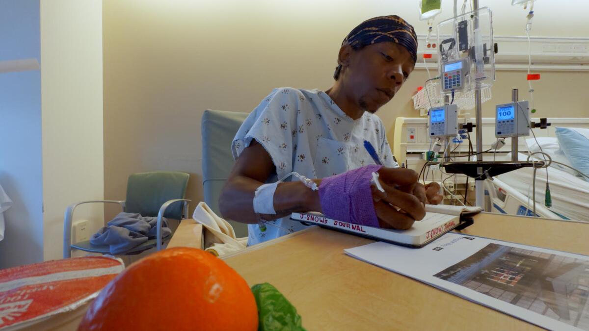 J. Snow cammina per i corridoi di un ospedale mentre affronta i problemi dell’anemia falciforme.