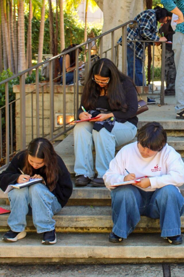 Durante una gita a Gabrielino Springs e ai LA River Gardens, gli studenti della Bravo Excessive College di Feng Shui Poetry within the Parks lavorano su poesie ispirate al paesaggio.