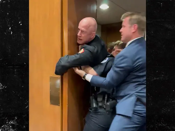 Il video mostra Sheehy, un senatore del Montana, che afferra le gambe del manifestante e cerca di sollevarlo fuori dalla stanza… ma il ragazzo infila la mano dietro il cardine della porta e non si muove.