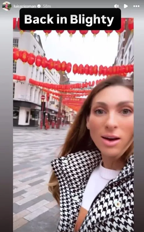 Luisa, che si è trasferita a Dubai a dicembre con due dei suoi figli e il marito Andrew Collins, ha aggiornato i suoi 712.000 follower su Instagram dicendo loro che period “tornata a Blighty”.