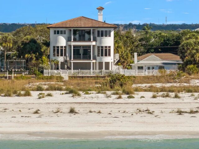 La tenuta di 5.400 piedi quadrati si trova proprio sulla sabbia e offre viste incredibili sul Golfo d’America.