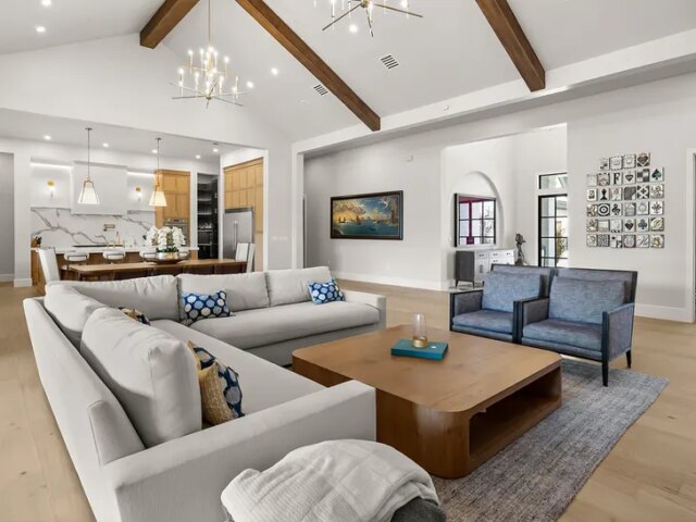 Dispone inoltre di cinque camere da letto, quattro bagni e mezzo e una gigantesca cucina con refrigeratore per vino e doppi forni Thermador da 30″.