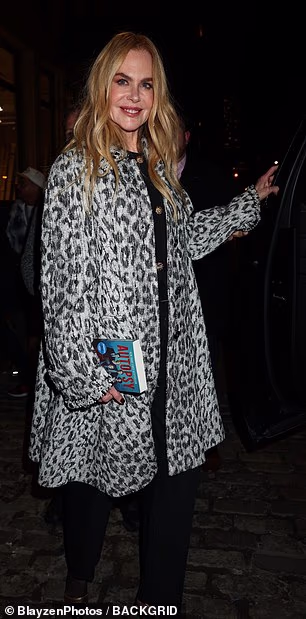 Kidman, 58 anni, ha fatto scivolare la sua figura snella e statuaria da 5 piedi e 11 pollici in un elegante tailleur pantalone nero selezionato dallo stilista Jason Bolden