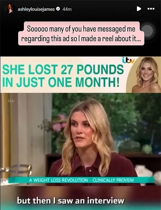 È stato realizzato un video AI spaventosamente realistico utilizzando le sembianze di Ashley James per promuovere pillole dimagranti (Immagine: Instagram)