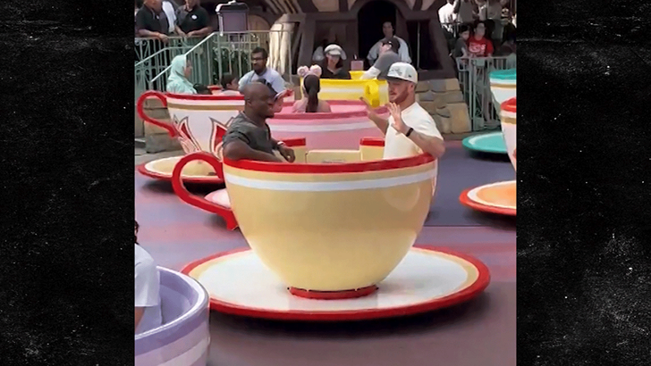 Sam Darnold E Kenneth Walker III devono aver ridotto al minimo i festeggiamenti del Tremendous Bowl… perché lunedì non hanno esitato a fare un giro su una tazza di tè rotante a Disneyland… e non è saltato nulla!!