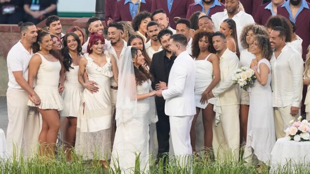 La scena del matrimonio, che ricreava una piccola piazza all’aperto, faceva parte della più grande celebrazione di Porto Rico da parte dello spettacolo.